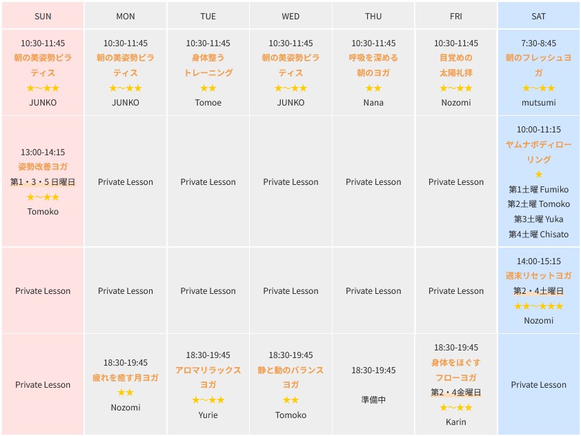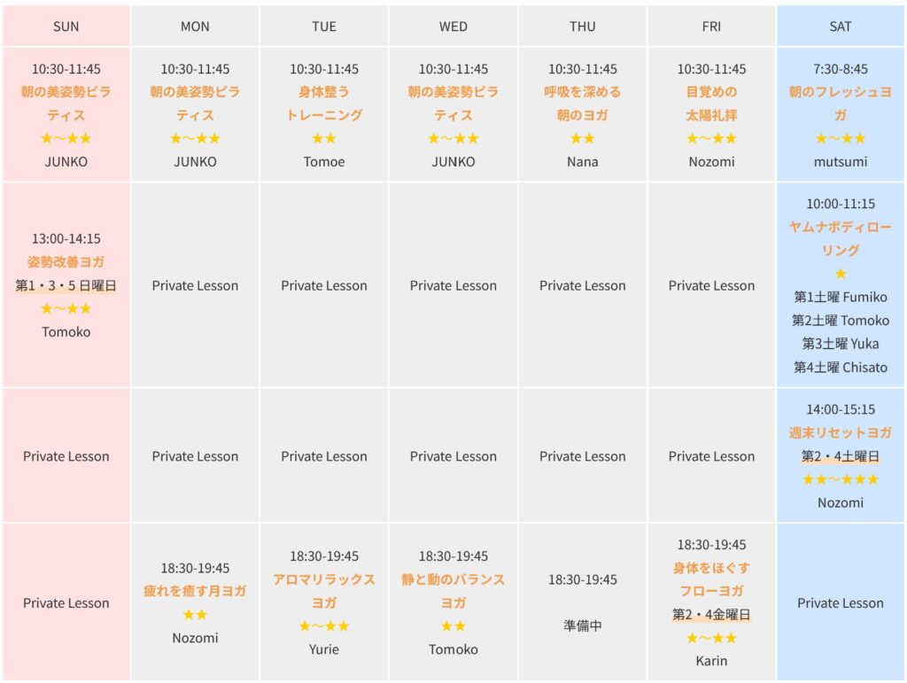 ヤムナのクラスをご用意しています。